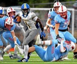 Crook County wide receiver Talen Williams (4) gains yardage after making a catch against Ashland on Friday night, Sept. 12, at Walter A. Phillips Field in Ashland.